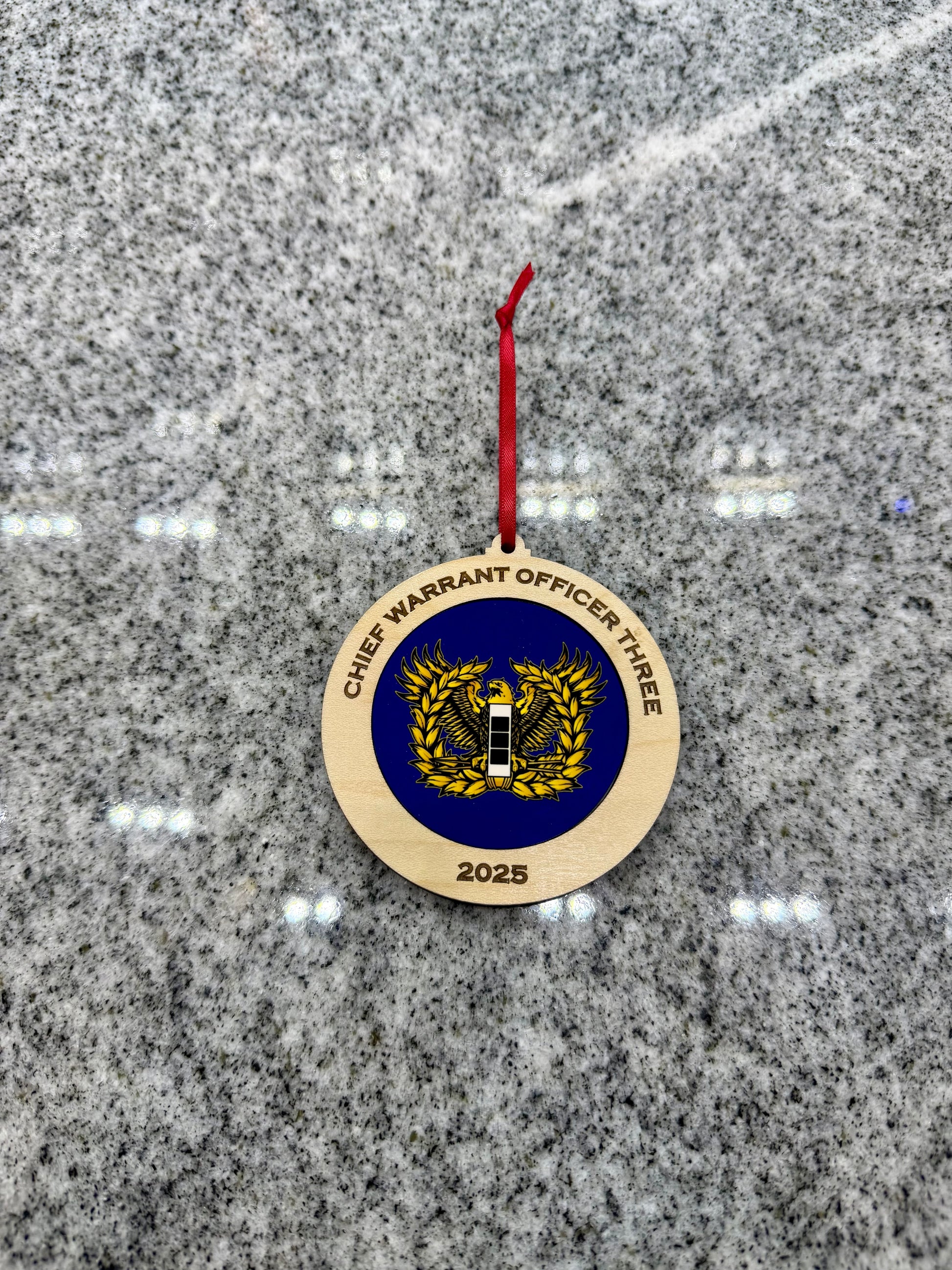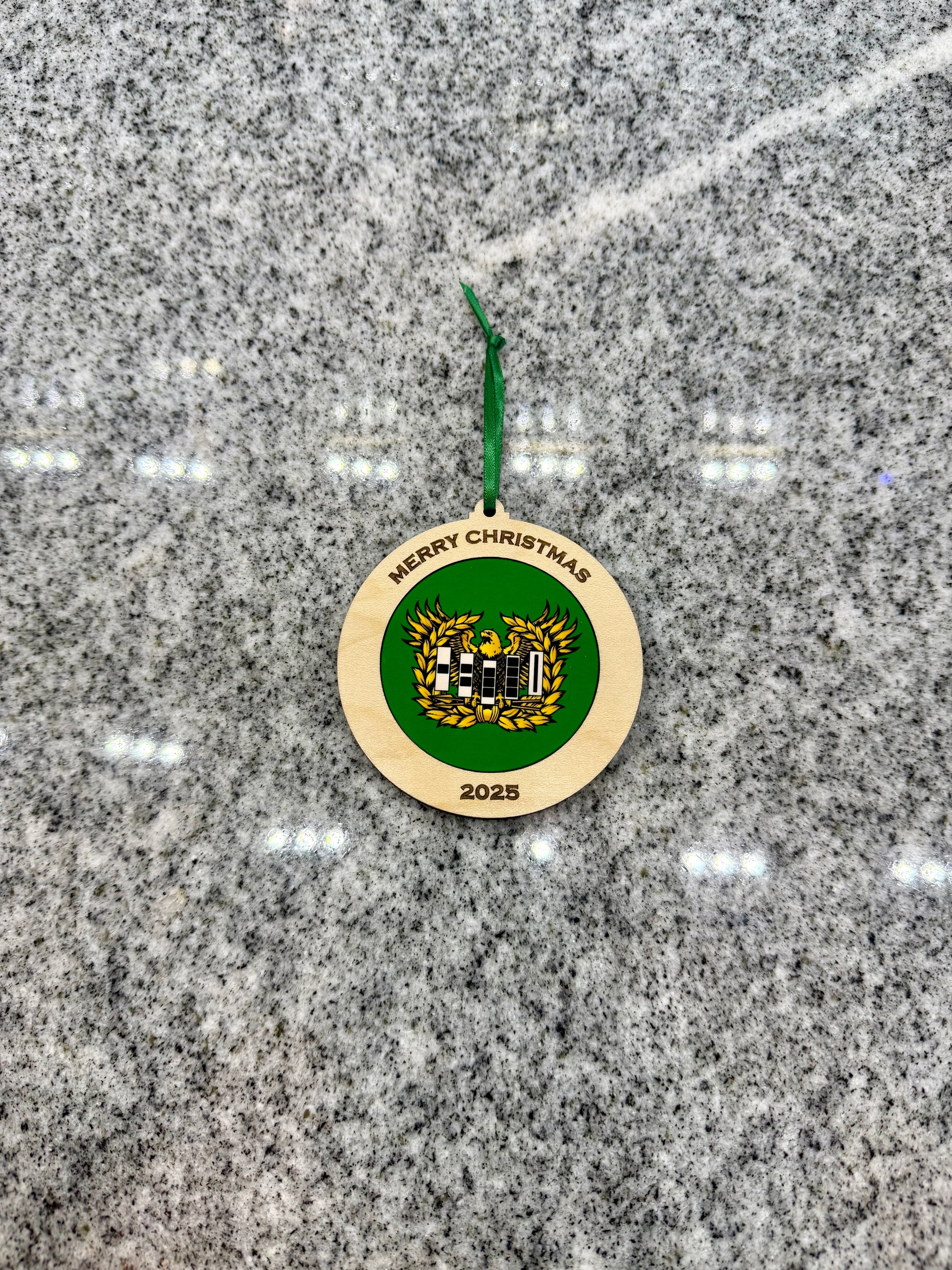 ✔ Wooden Ornament (3.25” Diameter) – Offers a classic, rustic charm with the option to customize in branch colors