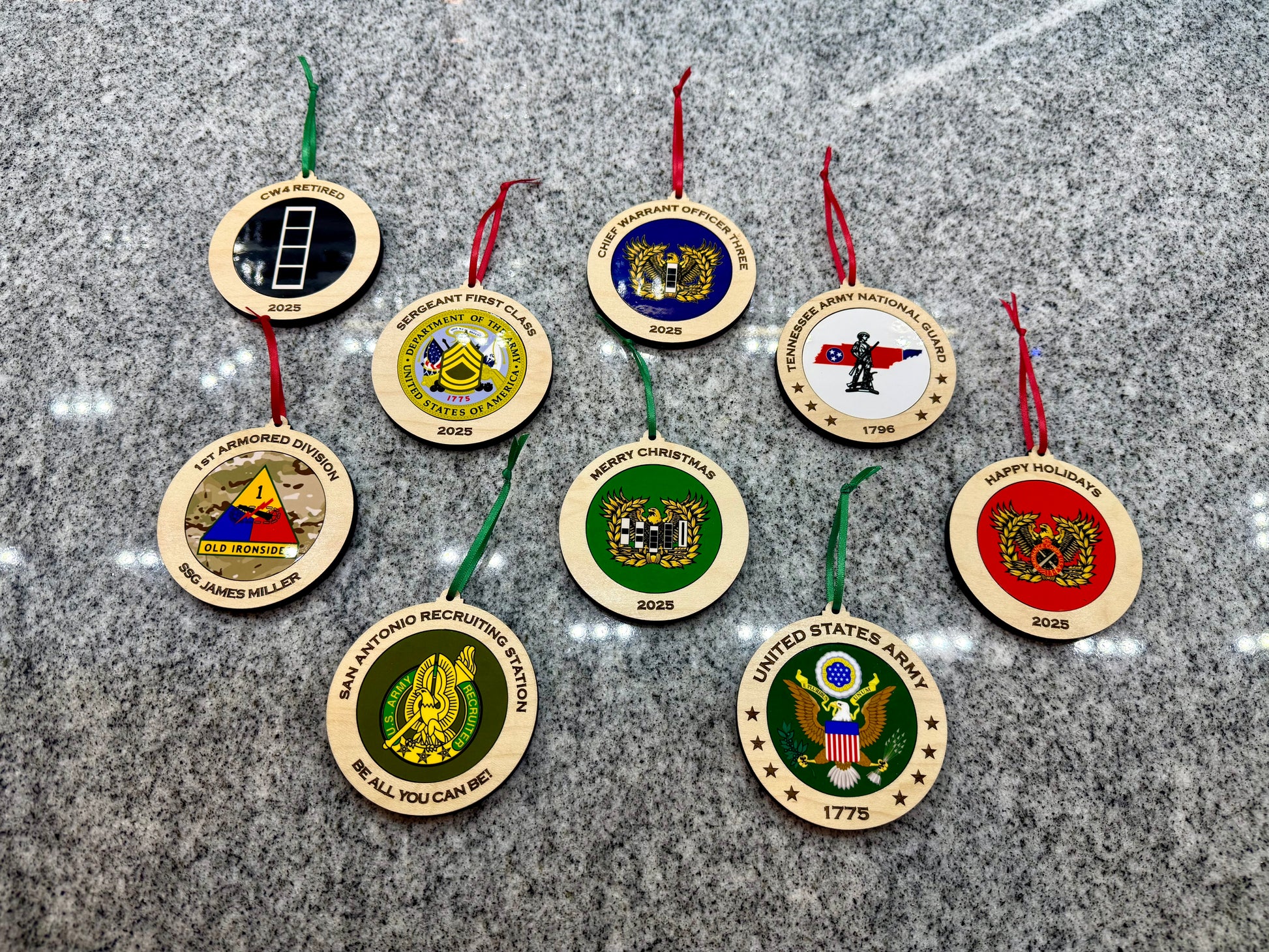 Add a meaningful and elegant touch to your holiday décor with our Custom Christmas Ornaments. Designed to celebrate service and tradition, these ornaments make the perfect keepsake for military personnel, families, and loved ones.