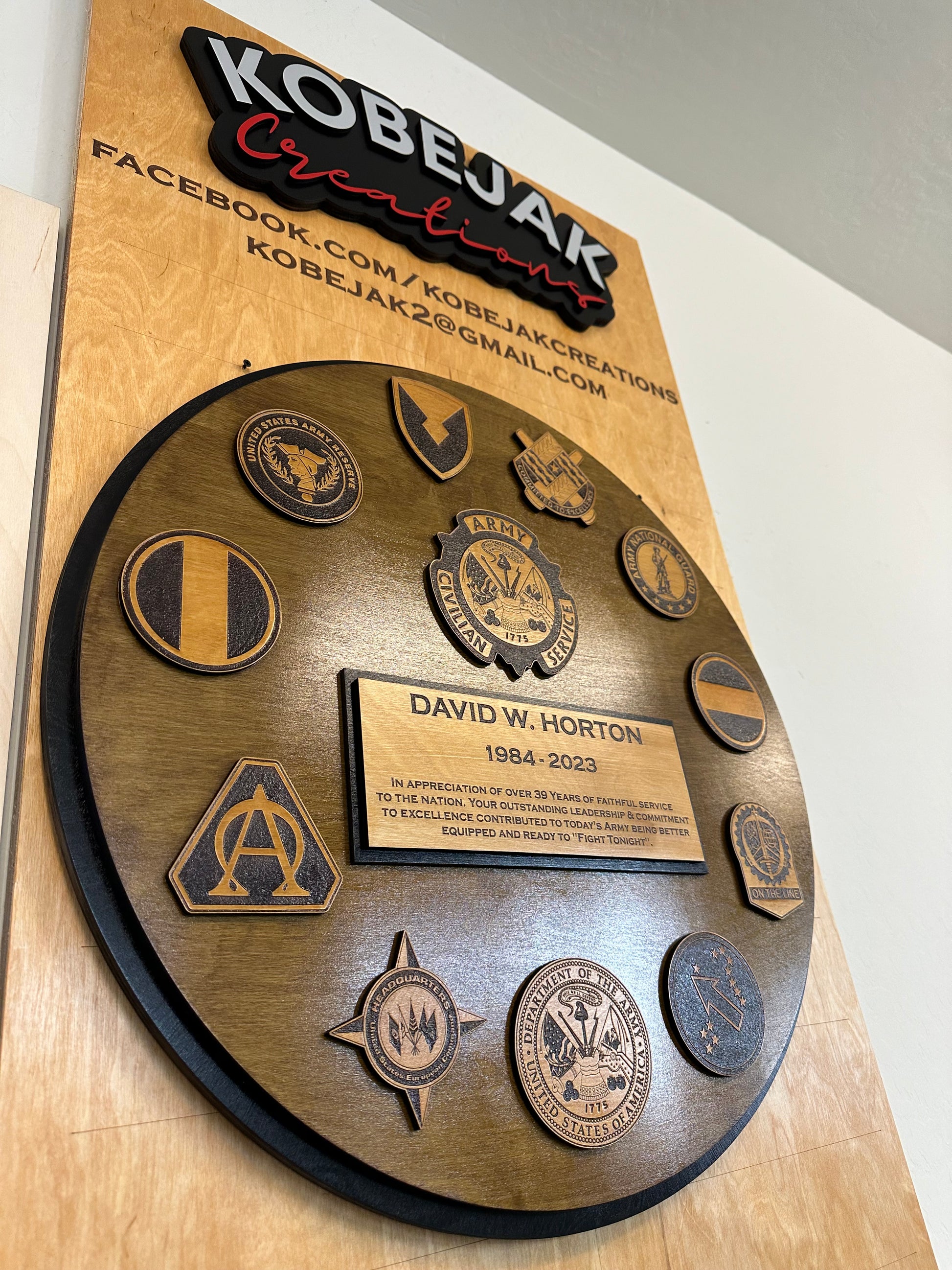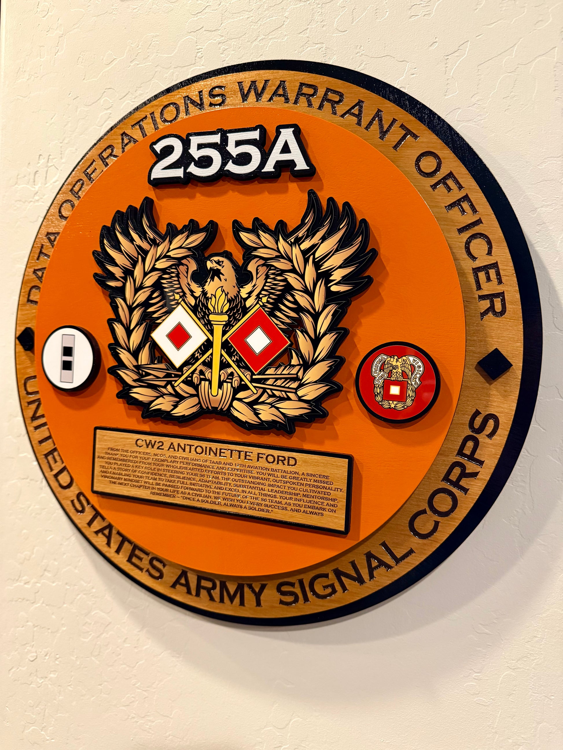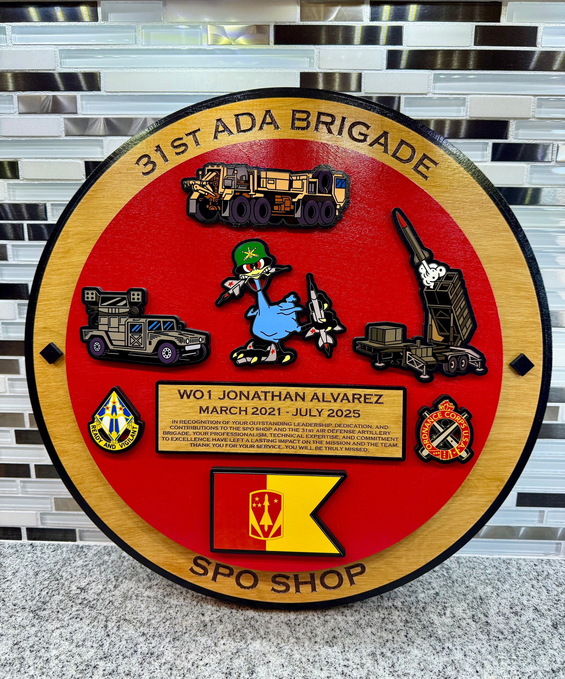 Honor dedicated military service with our Prestigious Circular Plaque, a bold and exceptional tribute designed to recognize commitment, leadership, and achievement. This plaque is a commanding display piece, perfect for farewells, retirements, or unit recognition.