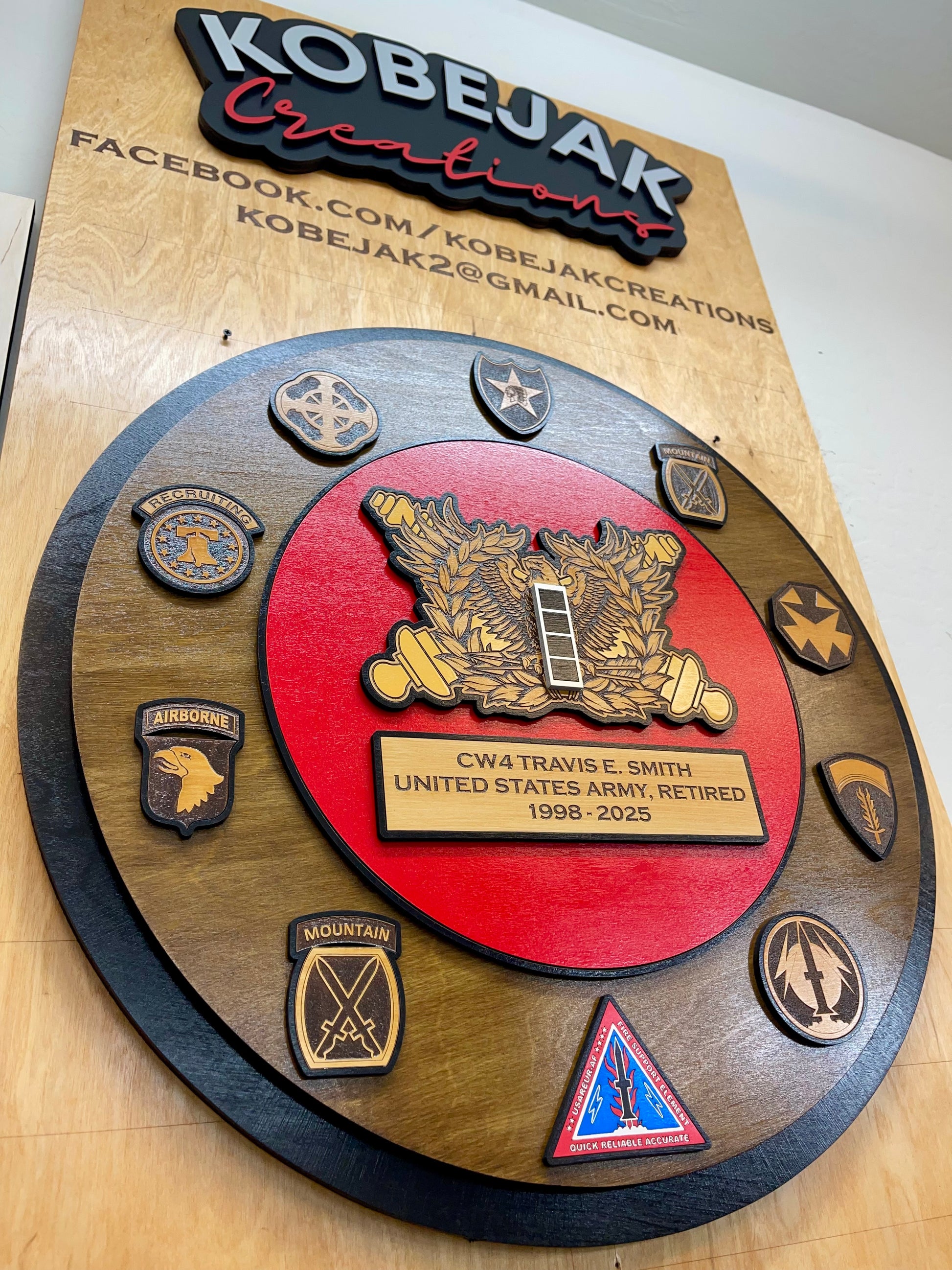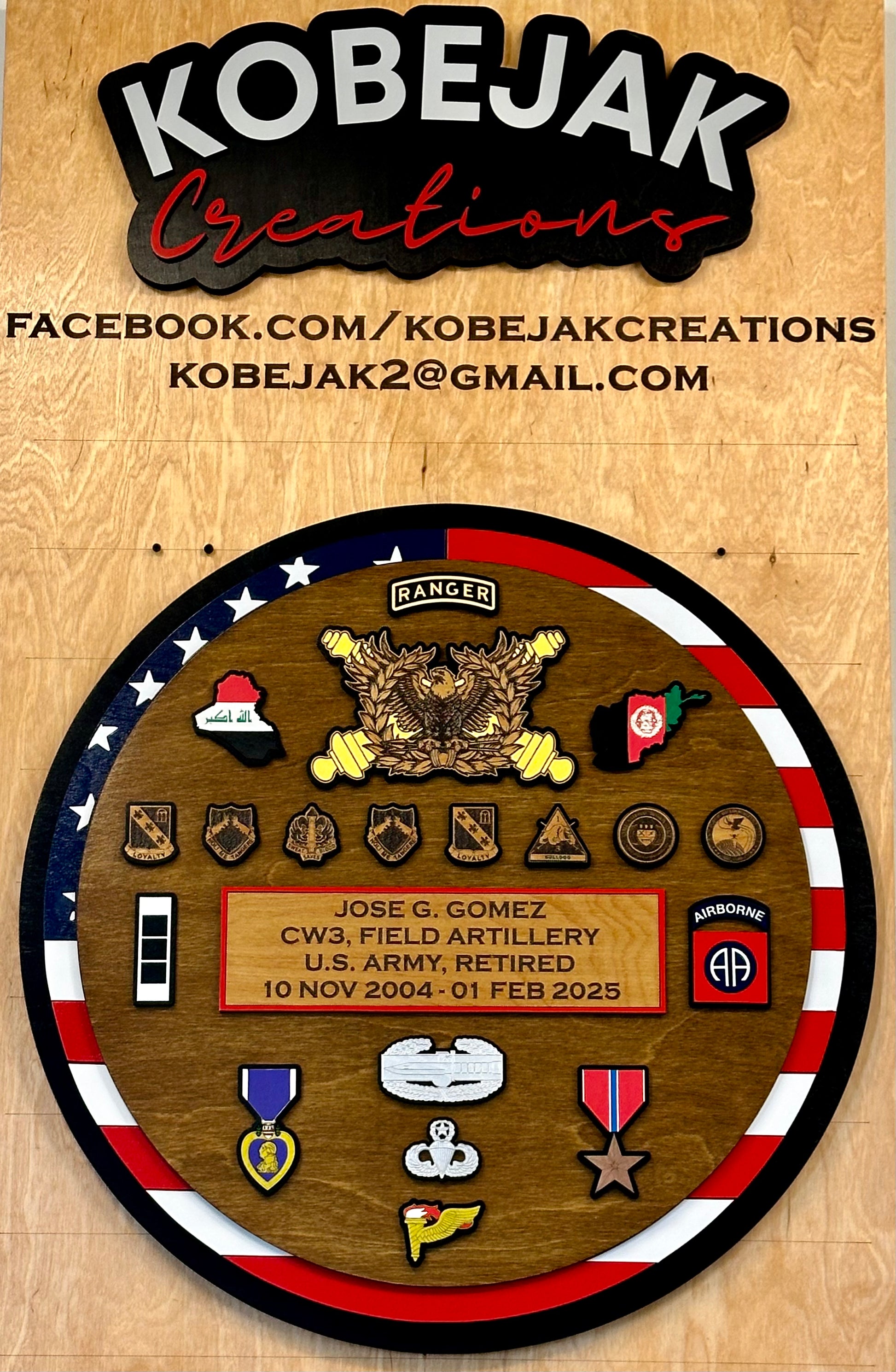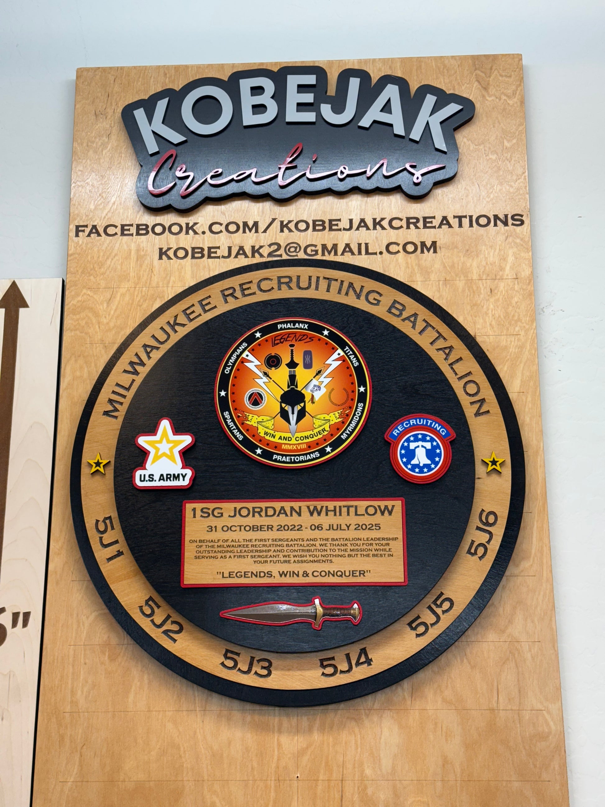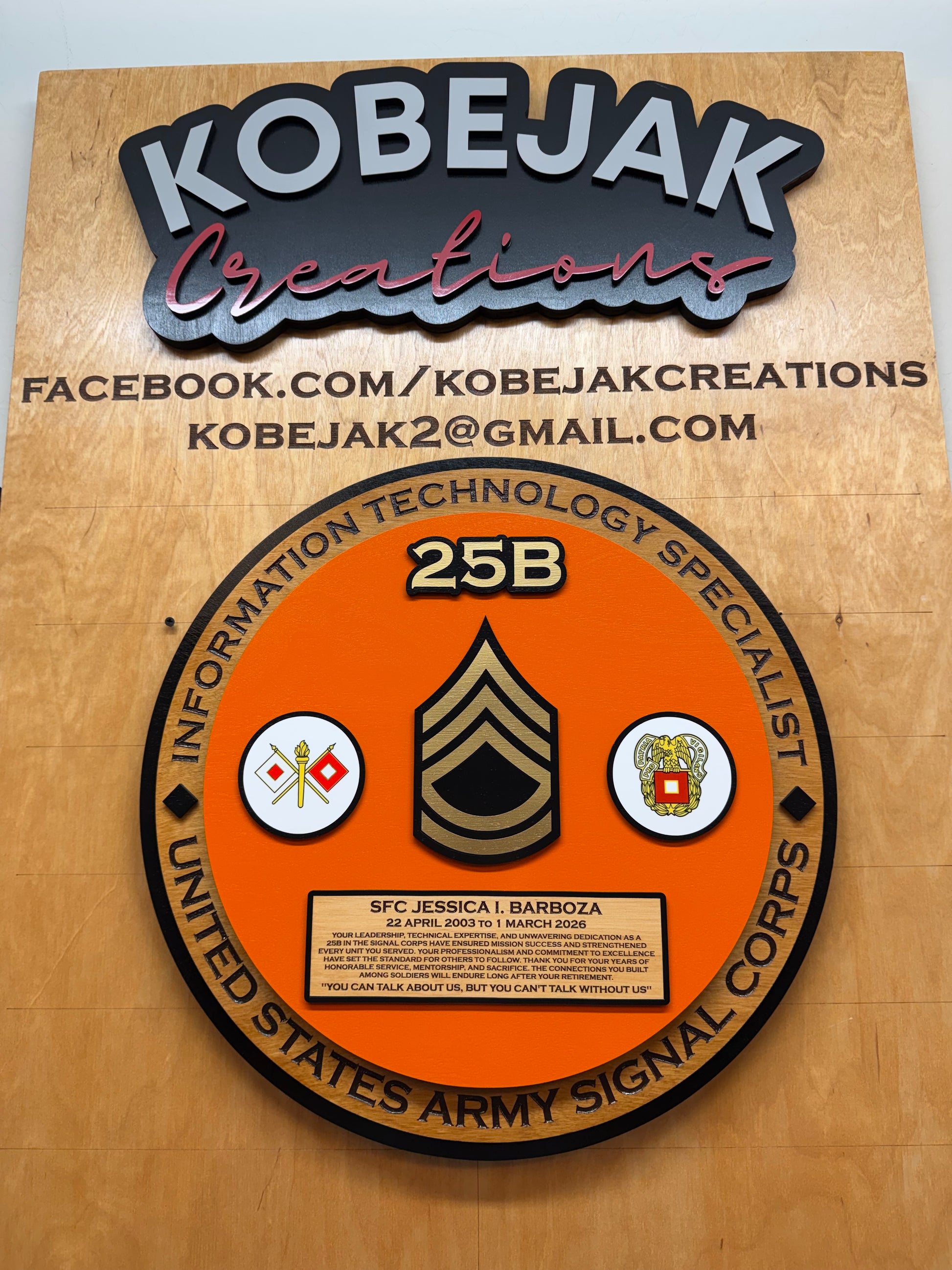 Honor dedicated military service with our Prestigious Circular Plaque, a bold and exceptional tribute designed to recognize commitment, leadership, and achievement. This plaque is a commanding display piece, perfect for farewells, retirements, or unit recognition.