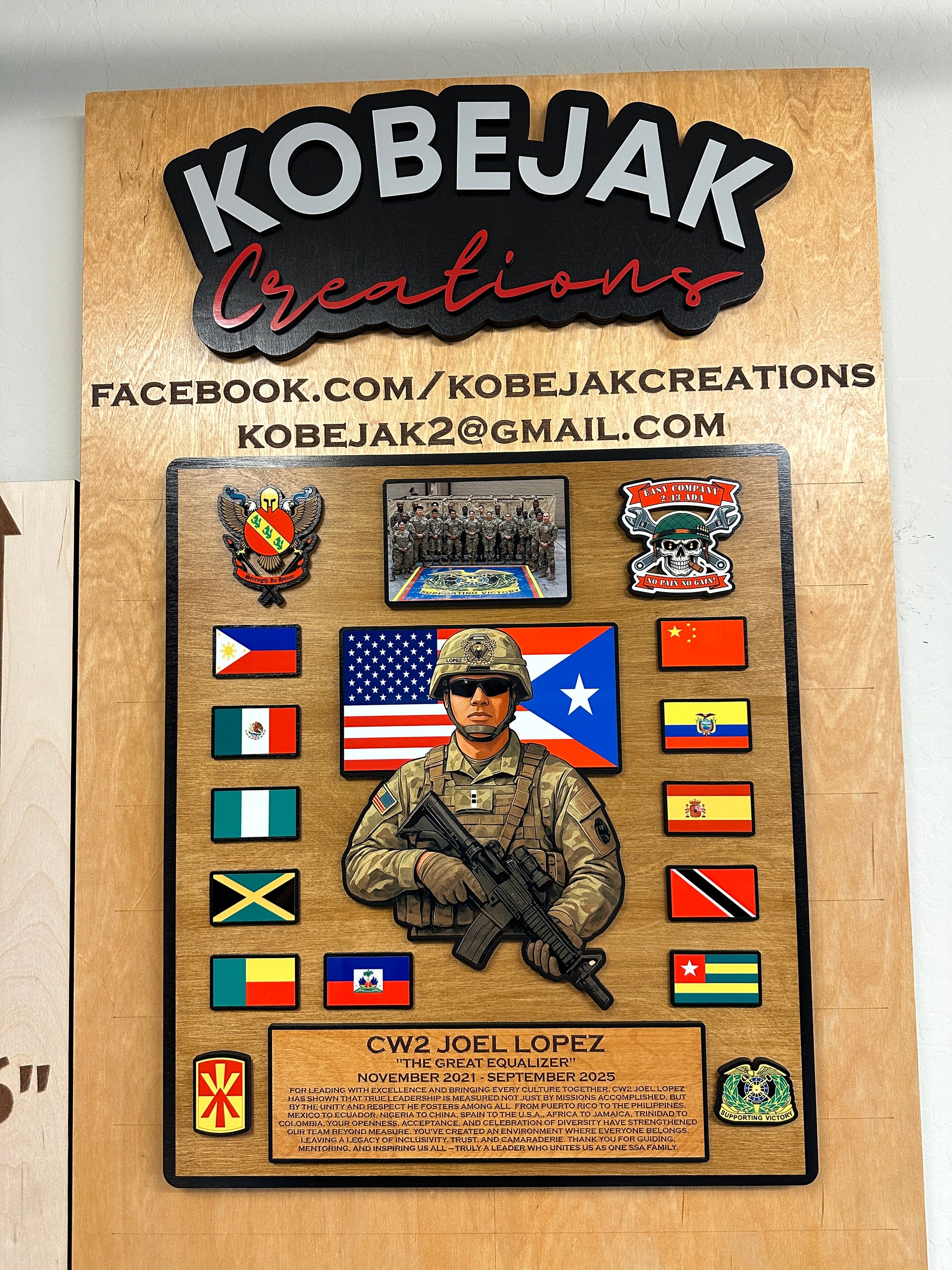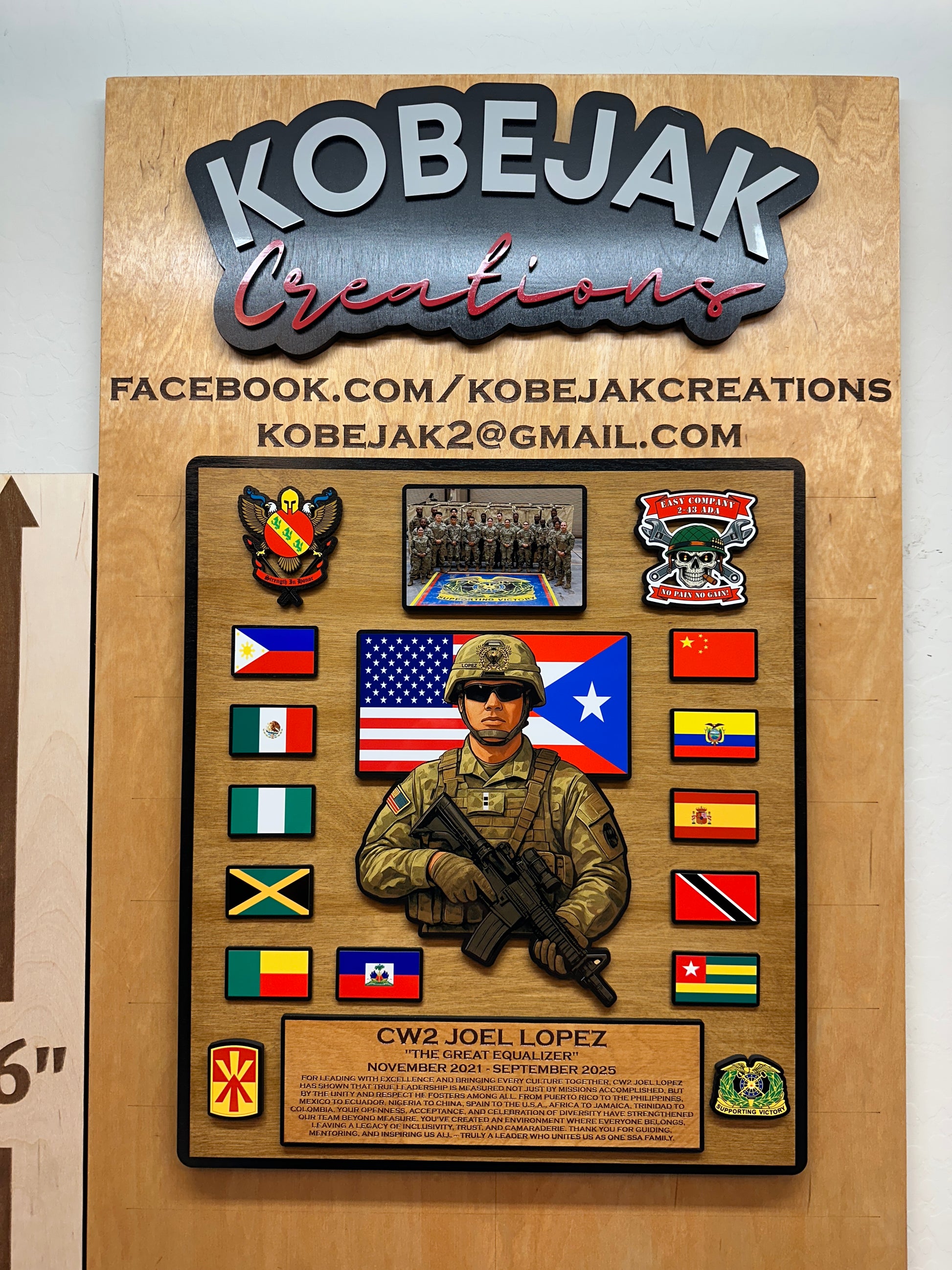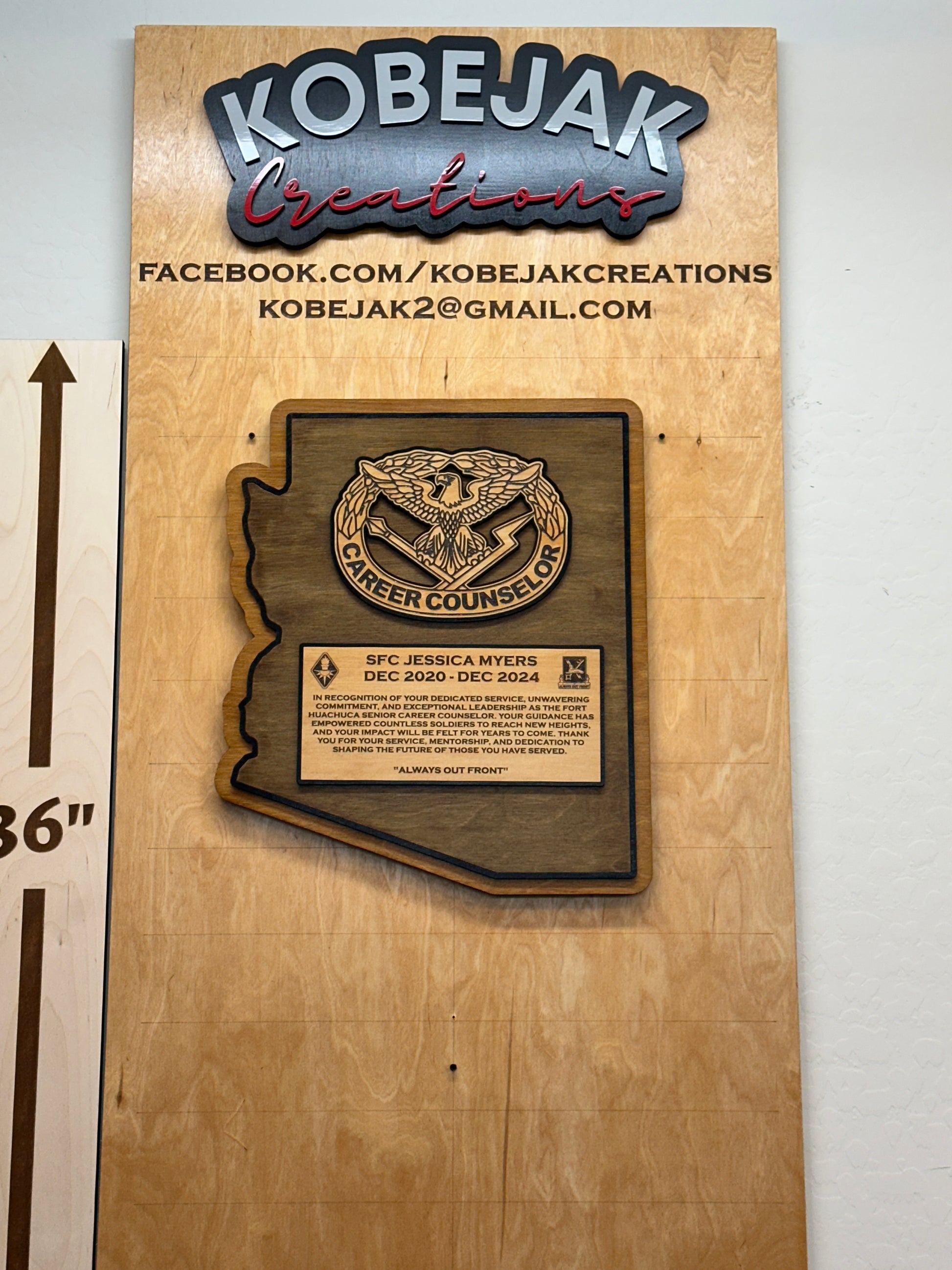 Celebrate service with precision using our custom frameless plaques. These sleek, modern designs offer a bold look without the border—perfect for recognizing promotions, retirements, reenlistments, or achievements.