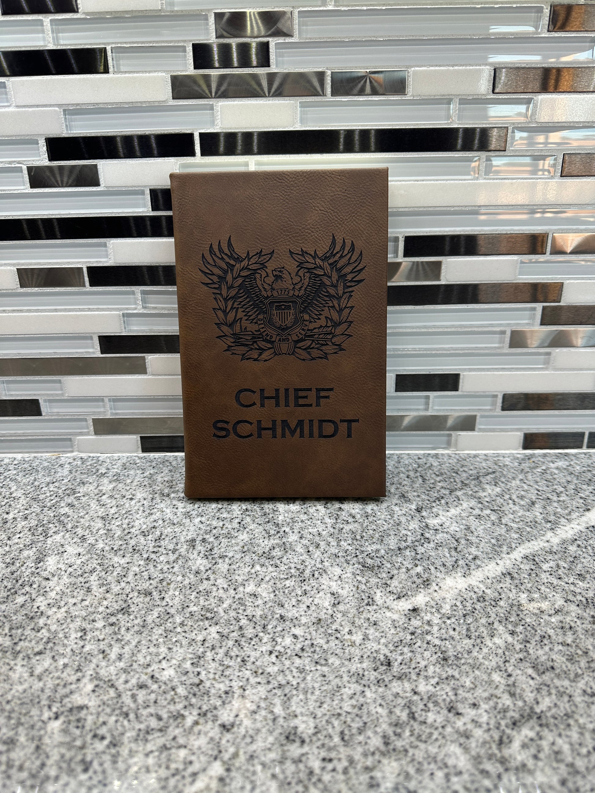 Capture your thoughts, plans, and ideas in our 5 1/4" x 8 1/4" Notebook Journals, designed for both functionality and sophistication. Whether for personal use, a farewell gift, or professional recognition, this sleek and durable journal makes an excellent companion.