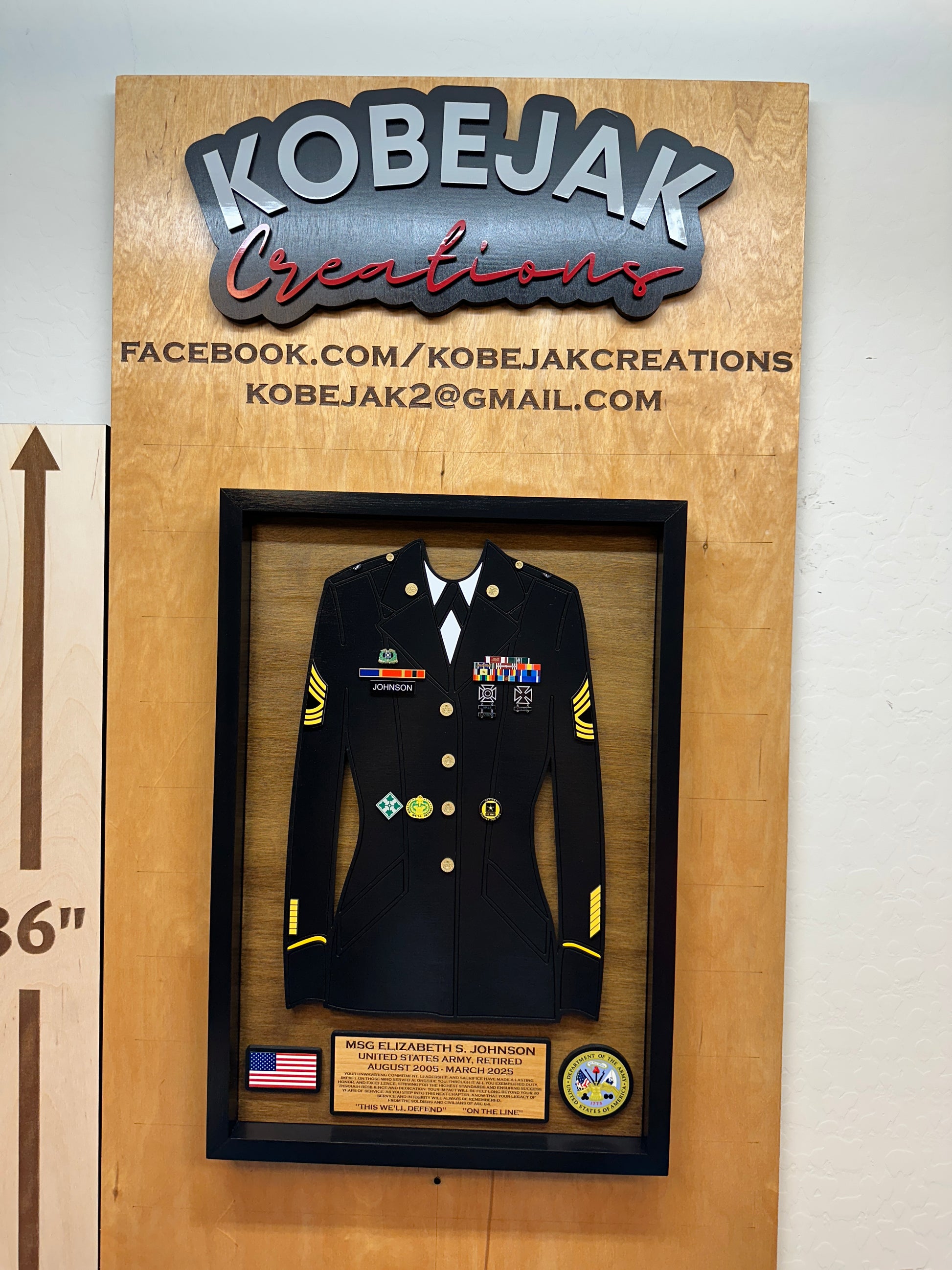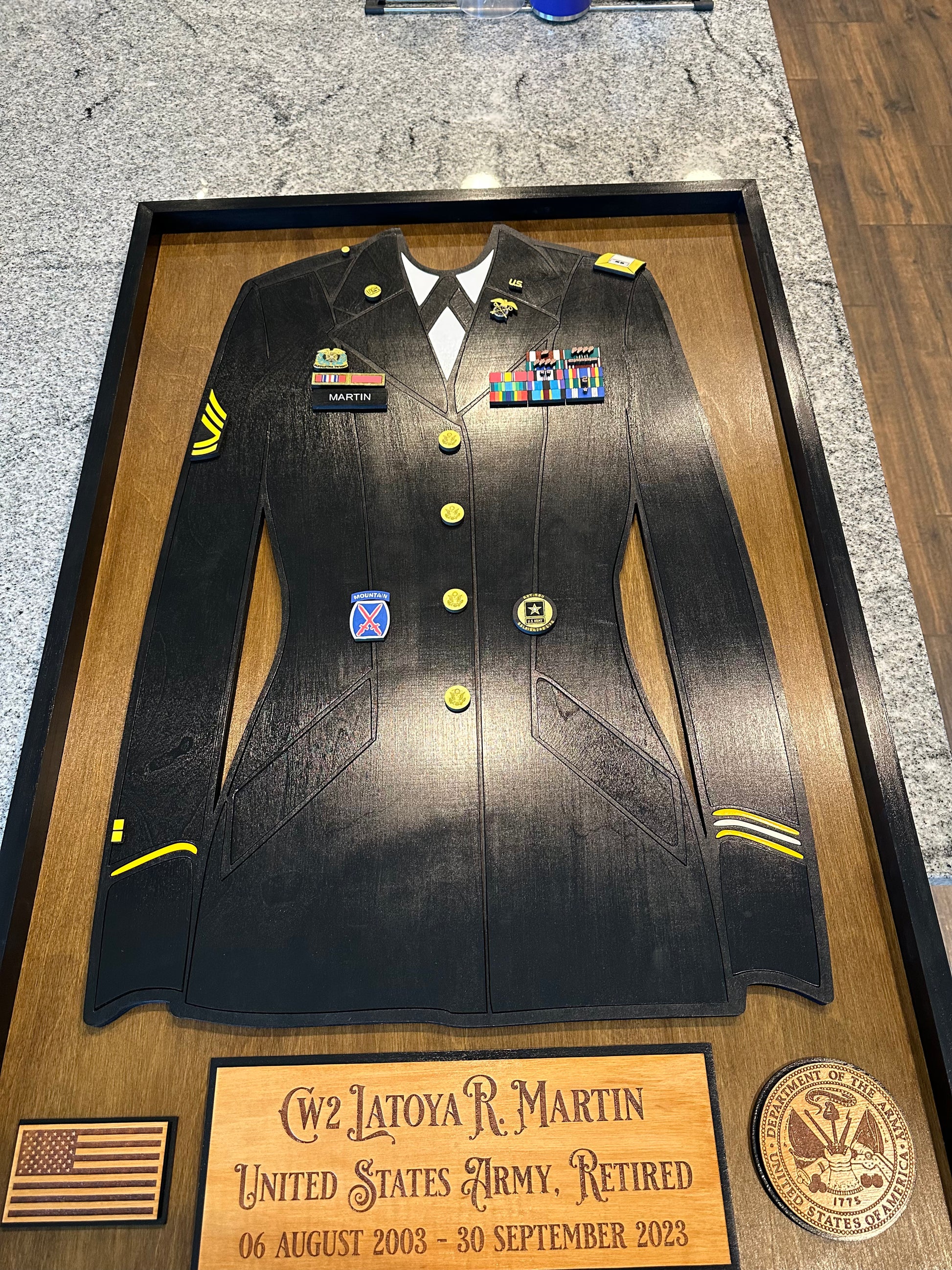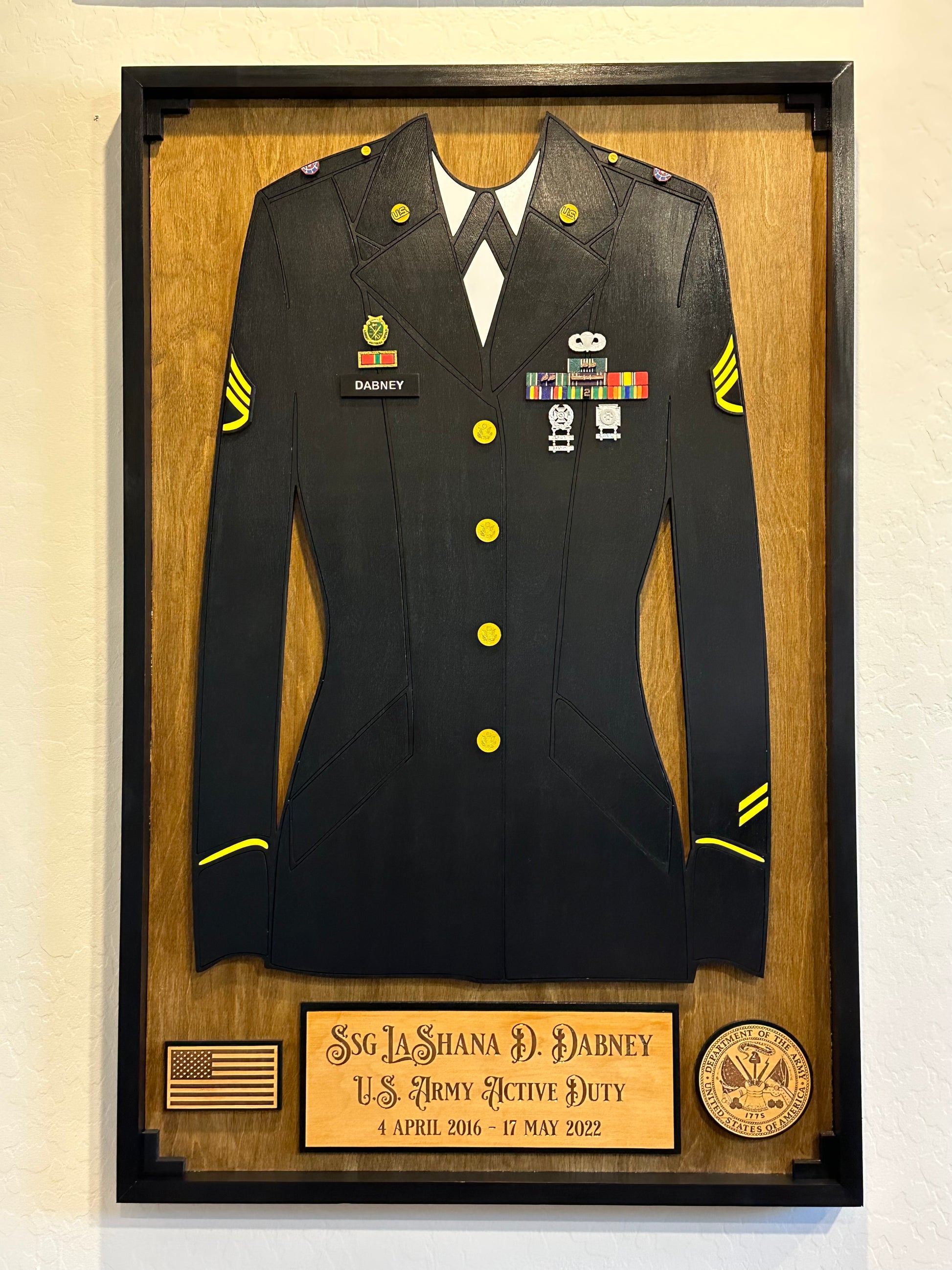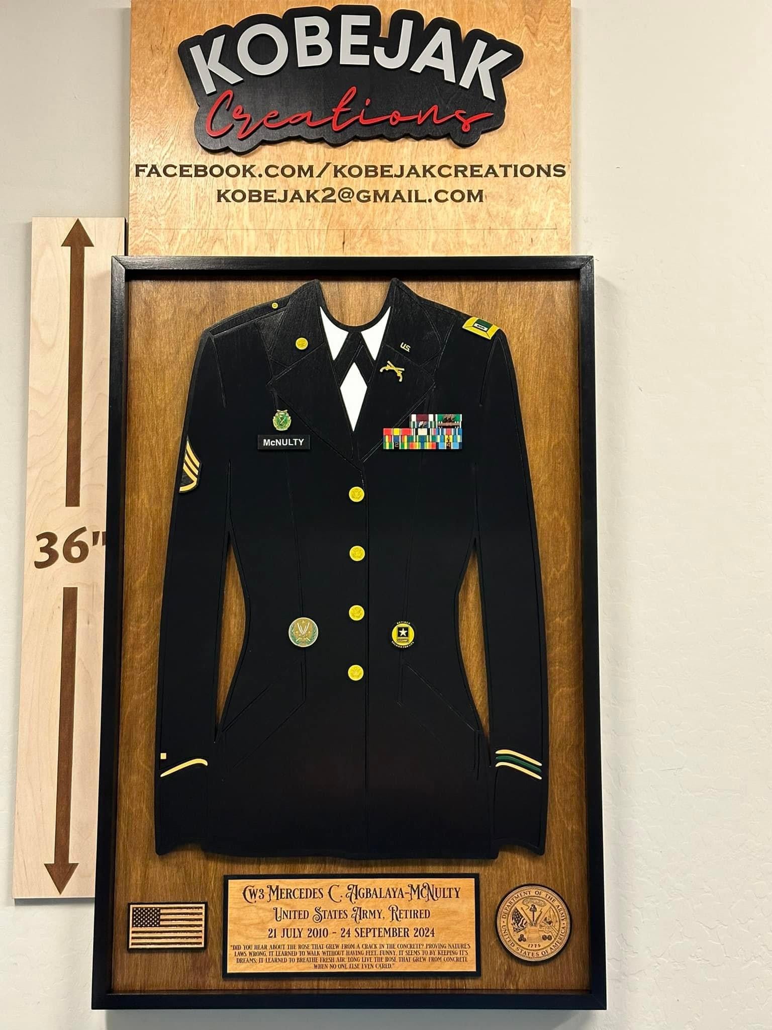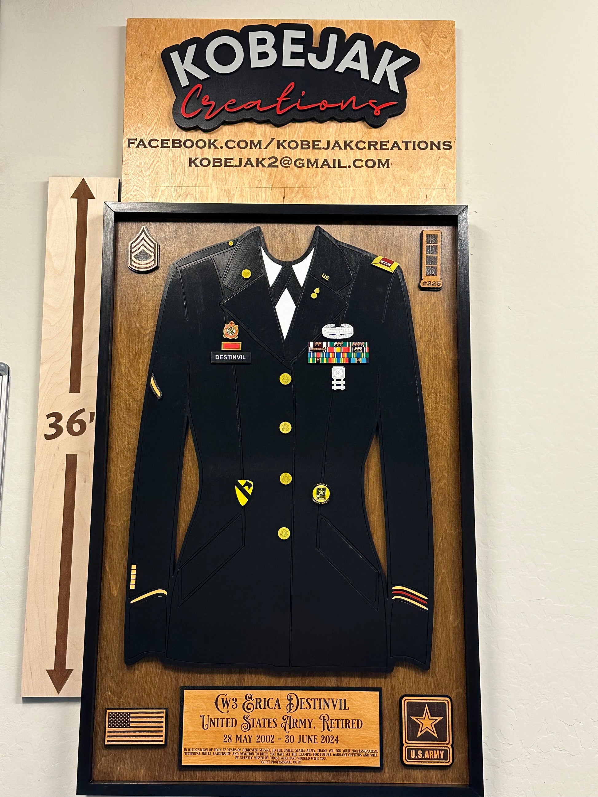 Honor a distinguished military career with our exceptional retirement plaque, meticulously designed to replicate the retiree’s uniform. This one-of-a-kind tribute captures every detail, ensuring a meaningful and accurate representation of their service.