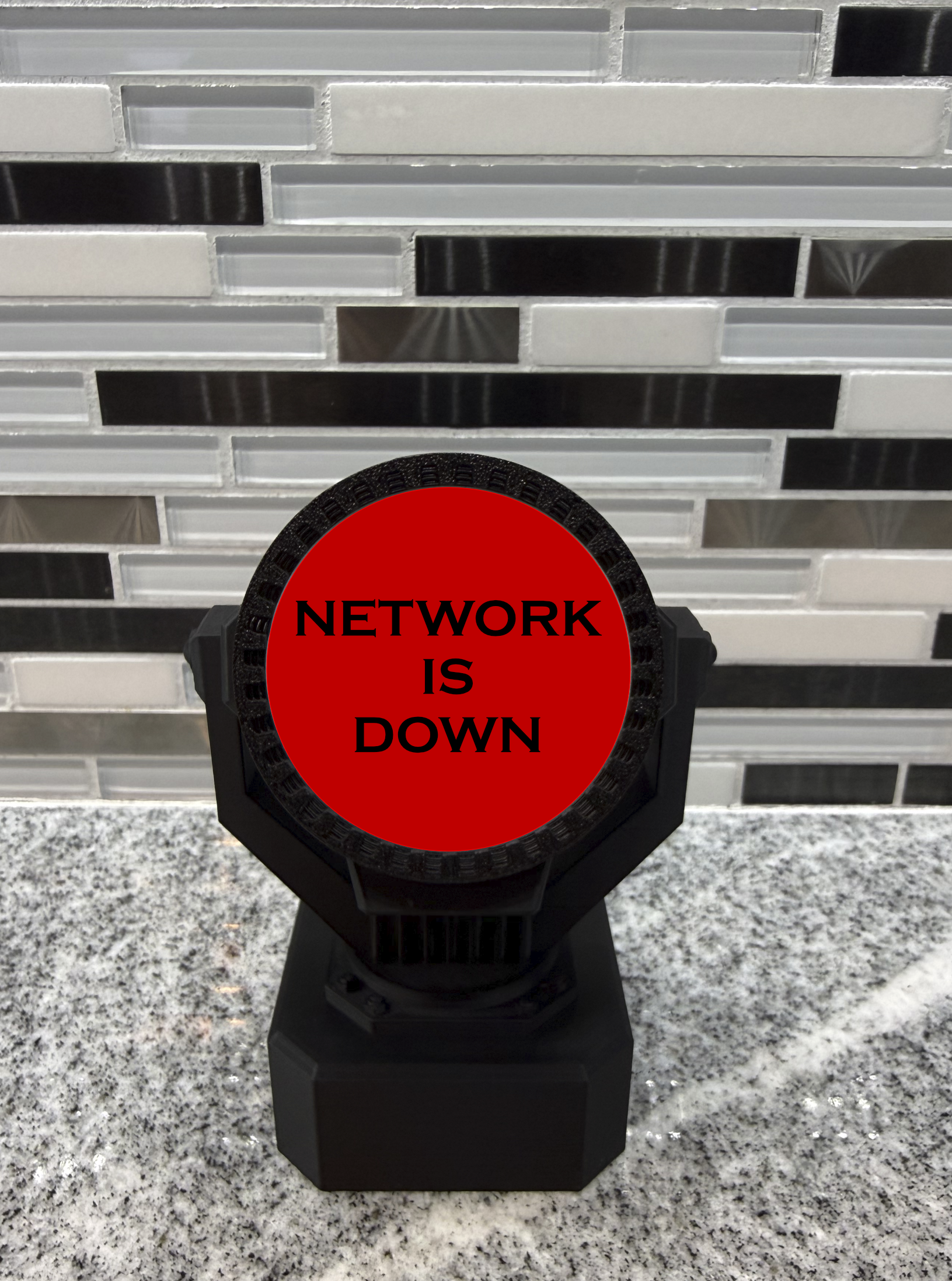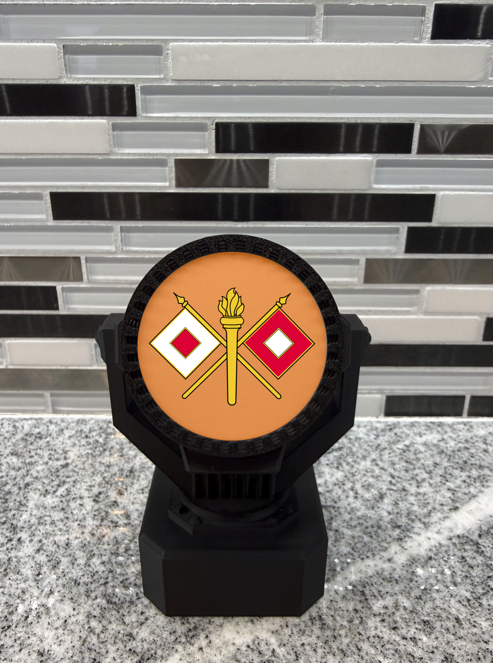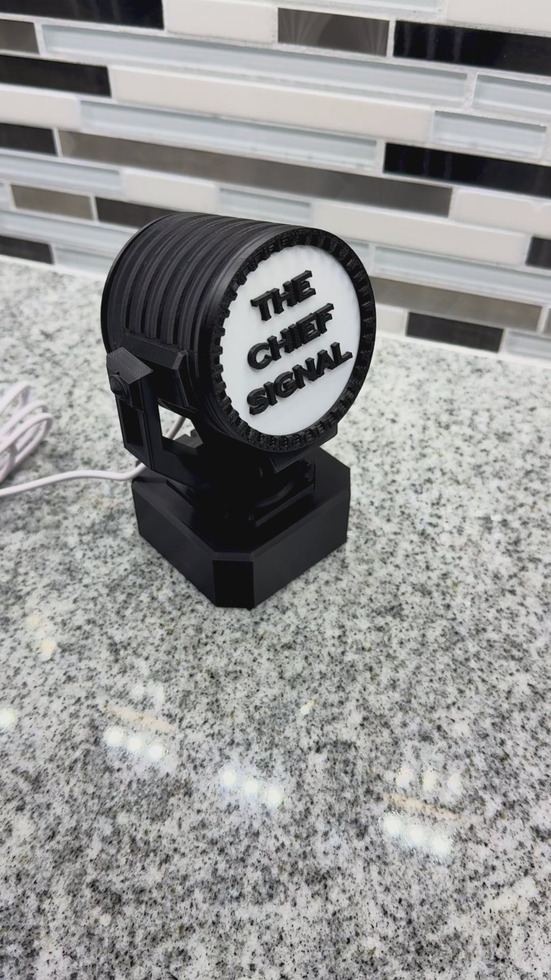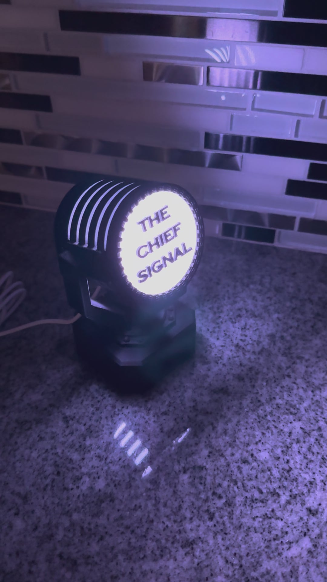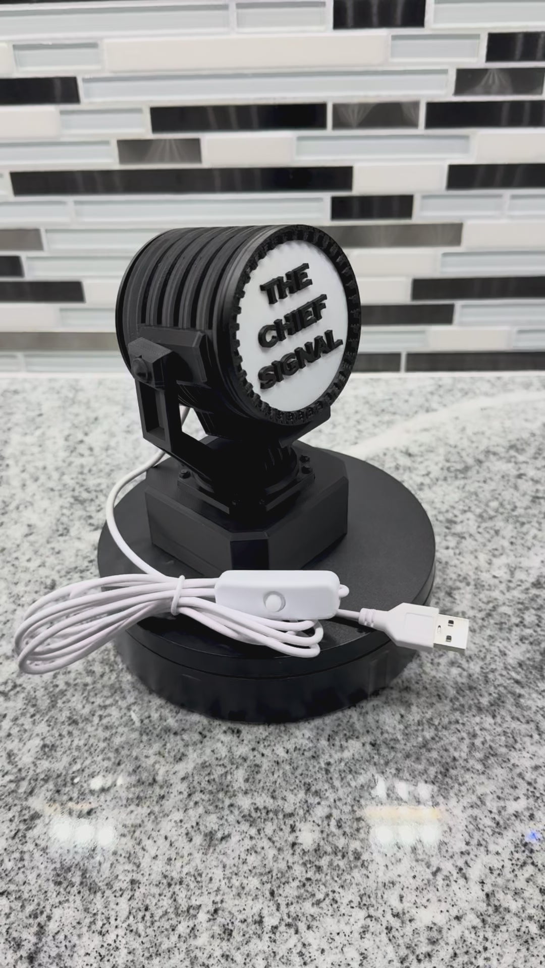 Standing 5.5 inches tall and measuring 2.75 inches wide by 2.75 inches deep, The Signal is sized perfectly for desks, shelves, and workspaces. It’s NOT a projector or spotlight. Instead, it’s a soft-glow desk light that creates a relaxed, professional look while adding a touch of humor or identity to your environment.