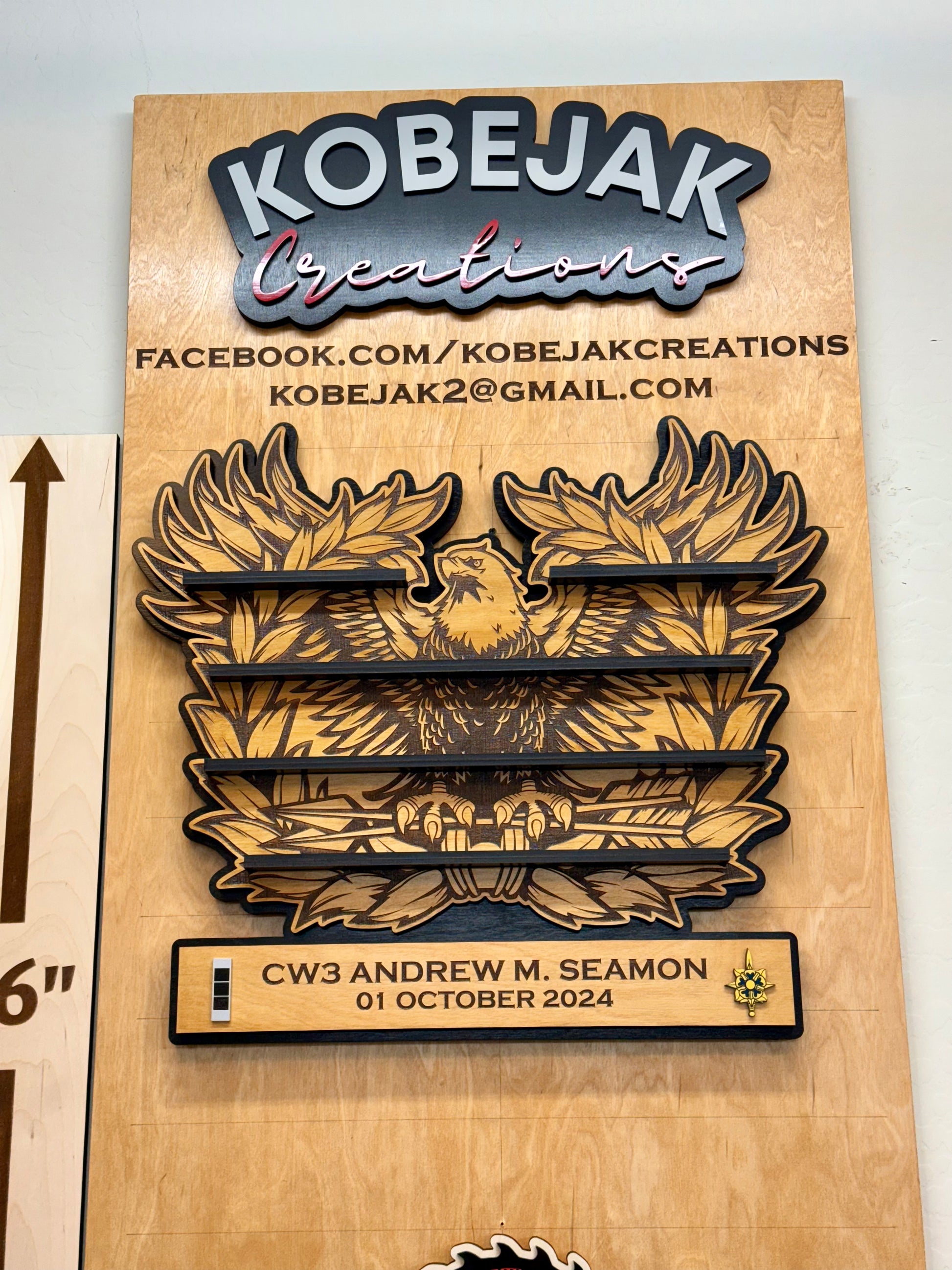 Showcase your Warrant Officer pride with our 22” Warrant Officer Coin Holder, a sleek and functional display piece designed for home, office, or military spaces. Crafted for versatility and elegance, this holder accommodates at least 30 coins, featuring oversized coin ledges for added flexibility.