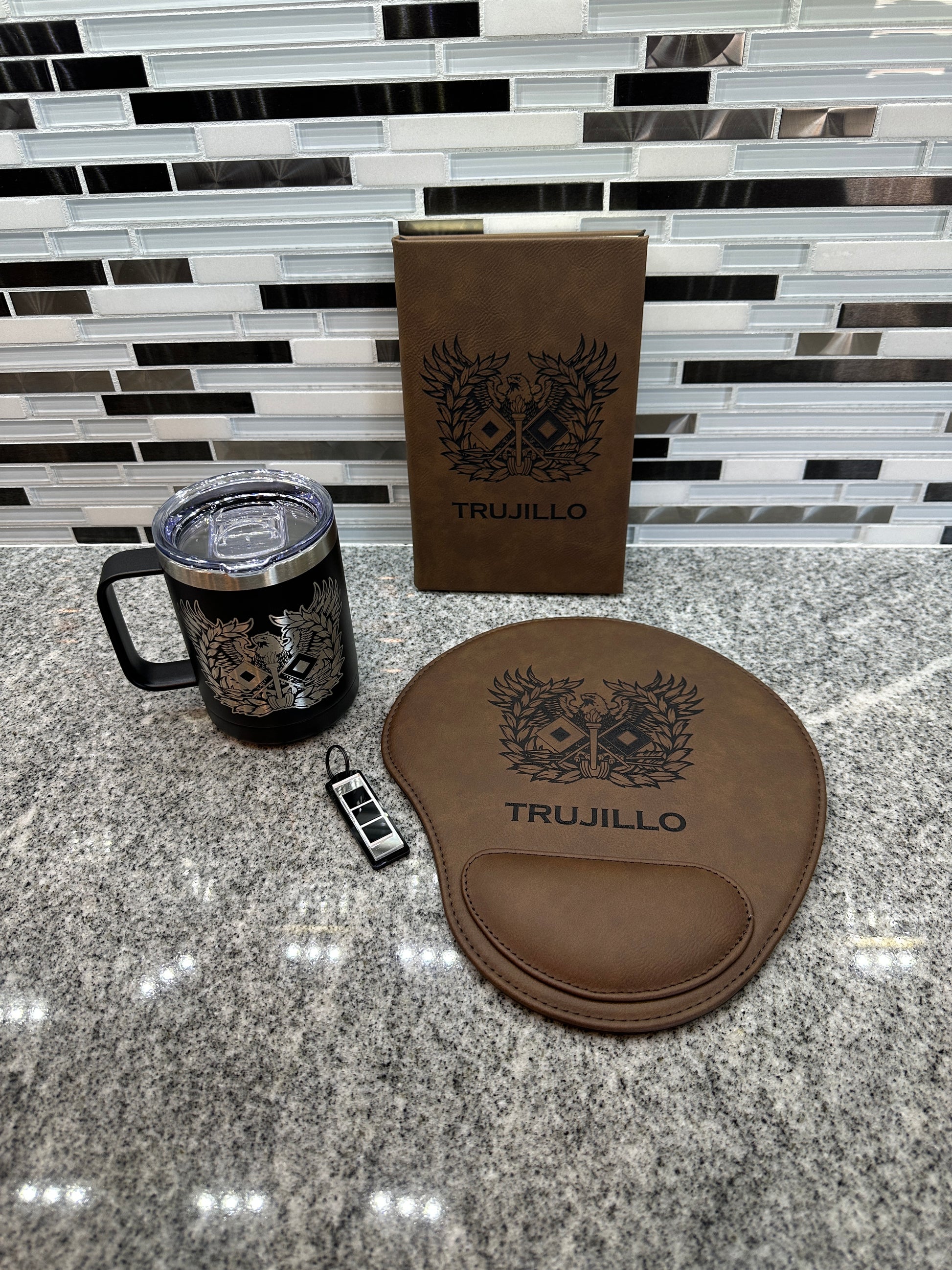 ✔ Dark Brown Leatherette Mousepad – Sleek, professional, and laser-engraved with custom details