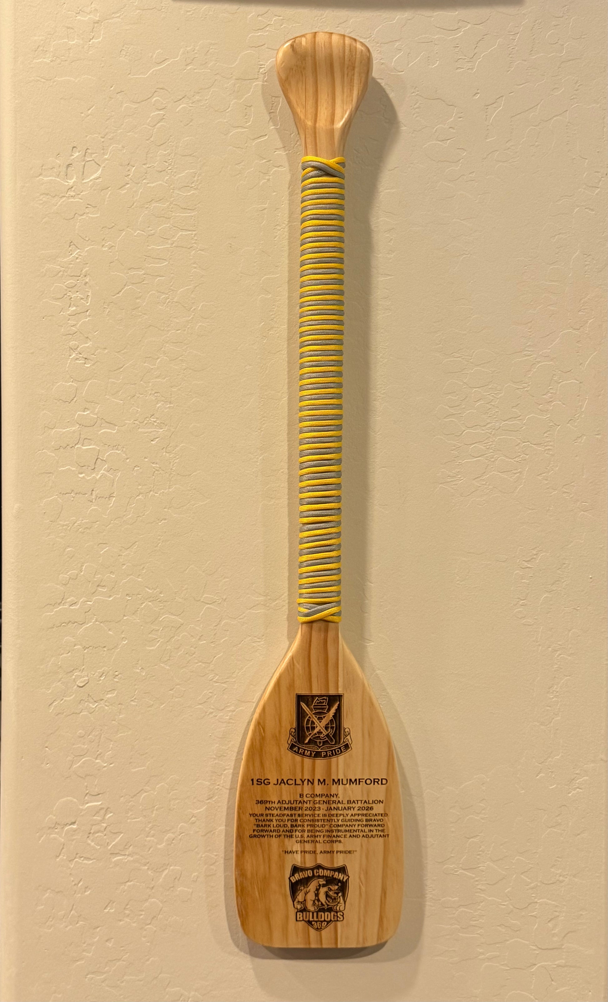Give a one-of-a-kind farewell gift with our custom 2.5-foot wooden oar, a distinctive and meaningful way to honor service, leadership, and camaraderie. Perfect for retirements, farewells, or unit recognition, this beautifully crafted oar serves as a lasting tribute.